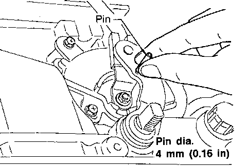 4. Insert pin into adjustment holes in both PNP switch and manual shaft of A/T assembly as near vertical as possible.