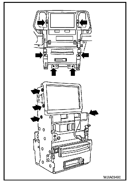 6. Remove fasteners securing rear of unified meter and A/C auto amp.