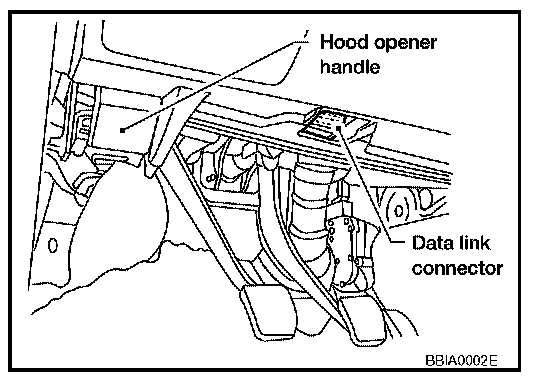 1. With the ignition switch OFF, connect CONSULT-II and "CONSULT-II converter" to the date link connector, and turn the ignition switch ON.