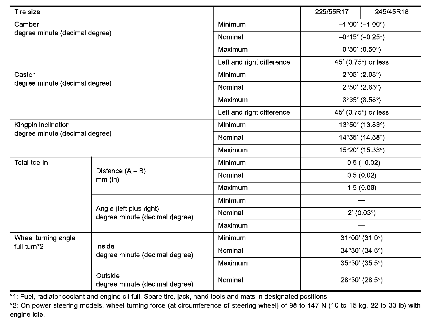 Front Wheel Alignment (Unladen)