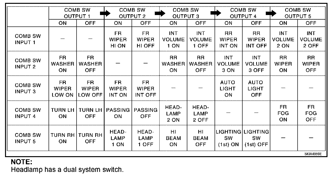 3. BCM - Operation table of combination switch