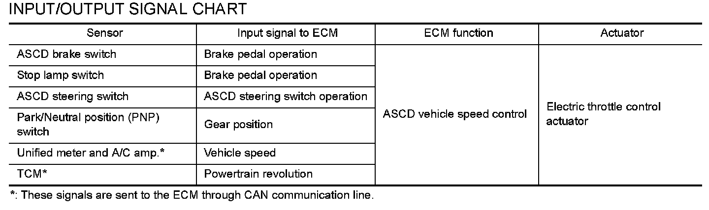 When the ECM detects any of the following conditions, the ECM will cancel the cruise operation and inform the driver by blinking indicator lamp.