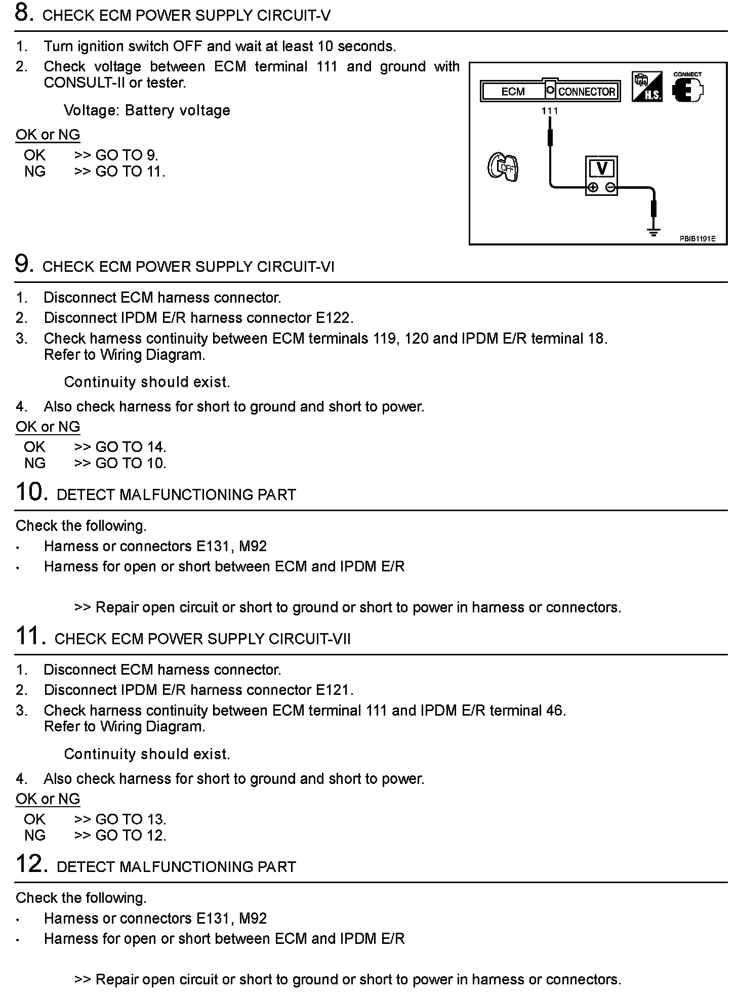 Diagnostic Procedure (Steps 8 - 12):