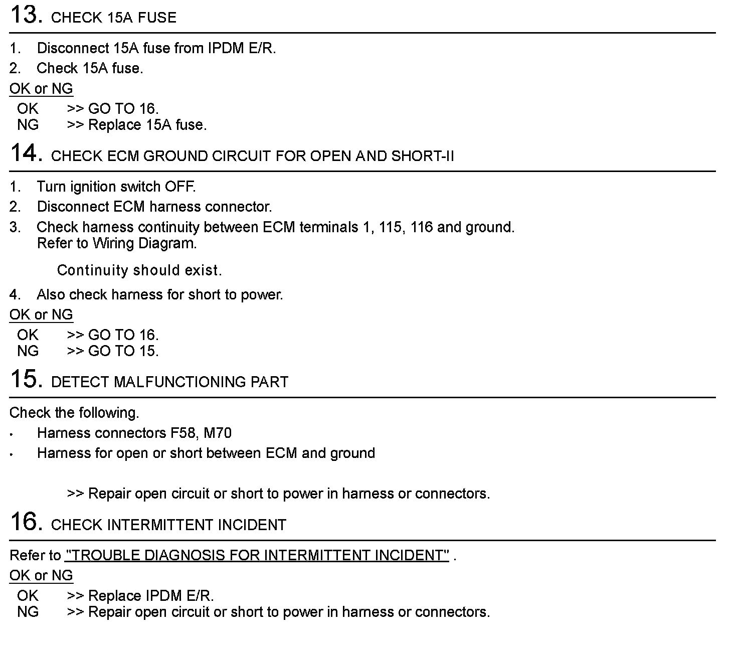 Diagnostic Procedure (Steps 13 - 16):
