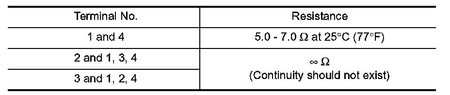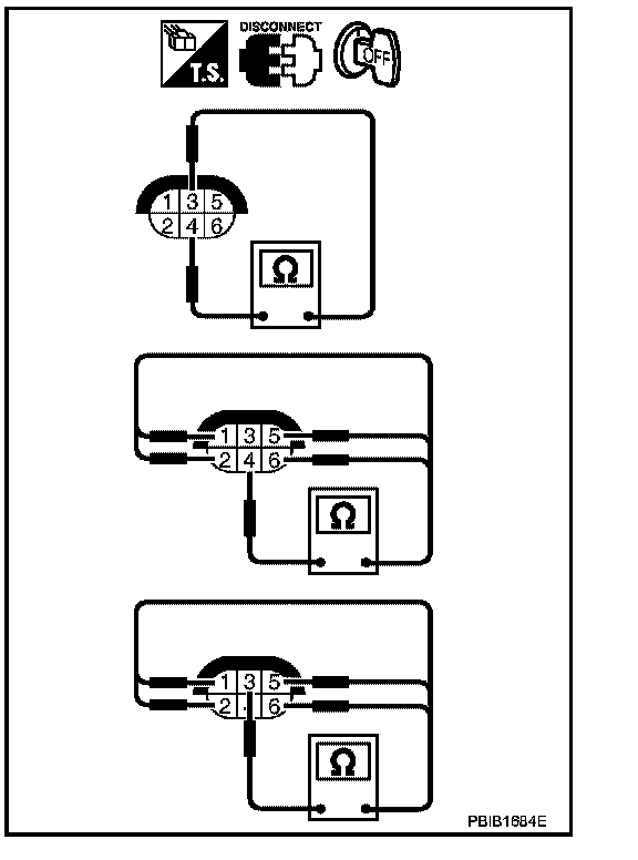 Check continuity between terminals 3 and 1, 2, 5, 6, terminals 4 and 1, 2, 5, 6.