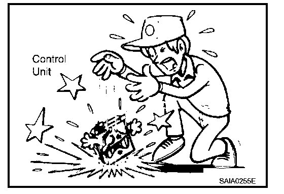 - When using a DMM, be careful not to let test probes get close to each other to prevent the power transistor in the control unit from damaging battery voltage because of short circuiting.