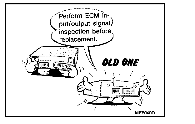 - Before replacing ECM, perform "ECM Terminals and Reference Value" inspection and make sure ECM functions properly. Refer to "ECM Terminals and Reference Value".