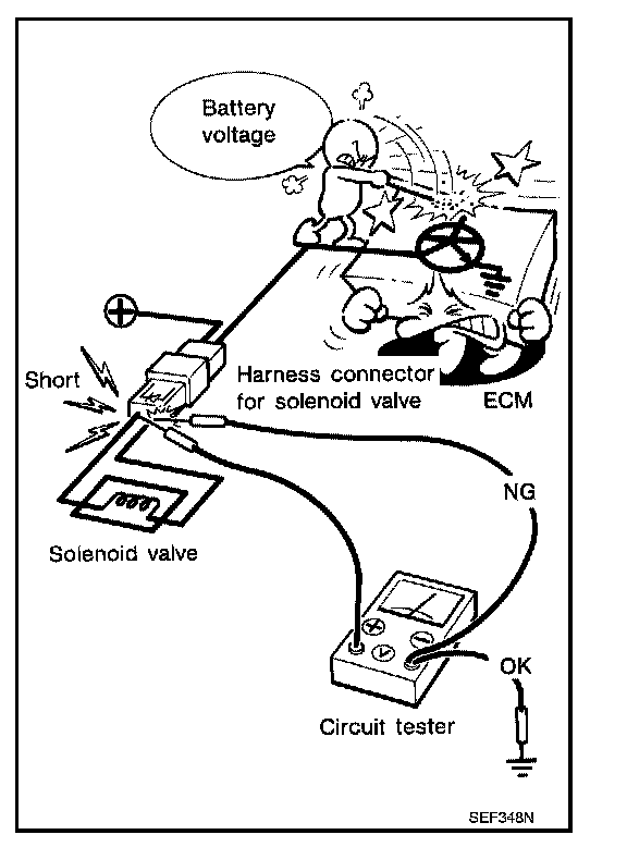 - Do not use ECM ground terminals when measuring input/output voltage. Doing so may result in damage to the ECM's transistor. Use a ground other than ECM terminals, such as the ground.