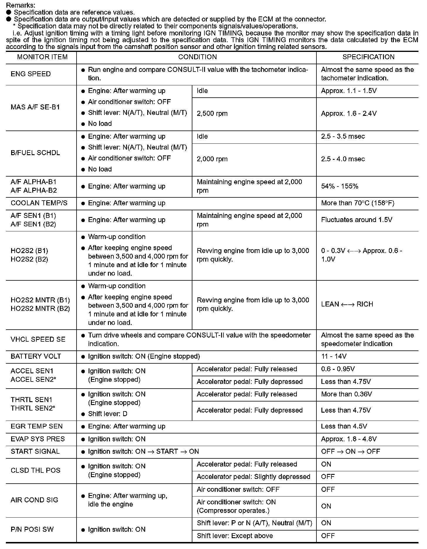 CONSULT-II Reference Value In Data Monitor Part 2: