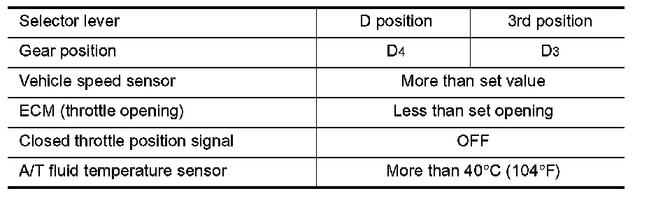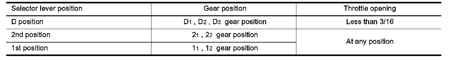 ^ The line pressure is reduced below 60°C (140°F) to prevent shifting shock due to low viscosity of automatic transmission fluid when temperature is low.