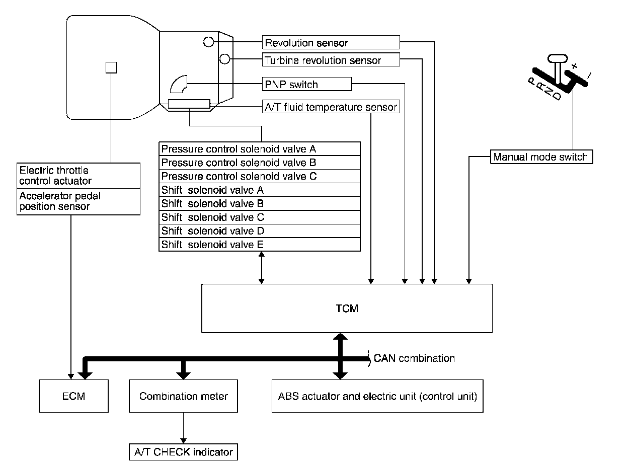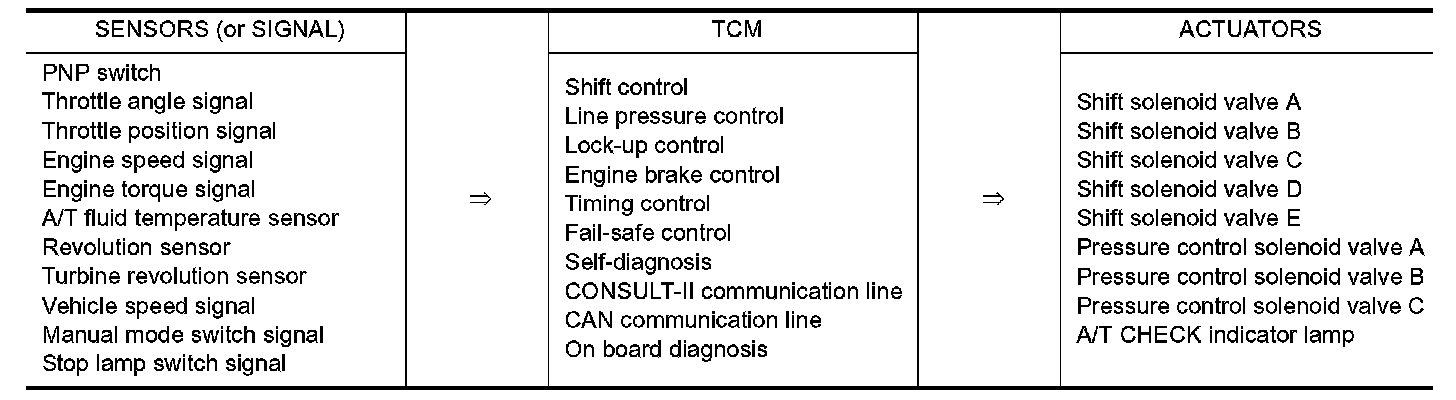 ^ Determine required line pressure, shifting point, lock-up operation, and engine brake operation.