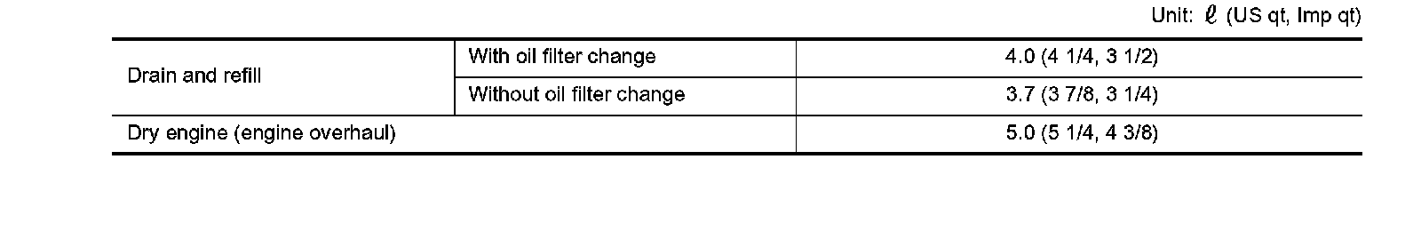 OIL CAPACITY (APPROXIMATE)