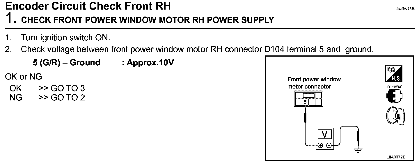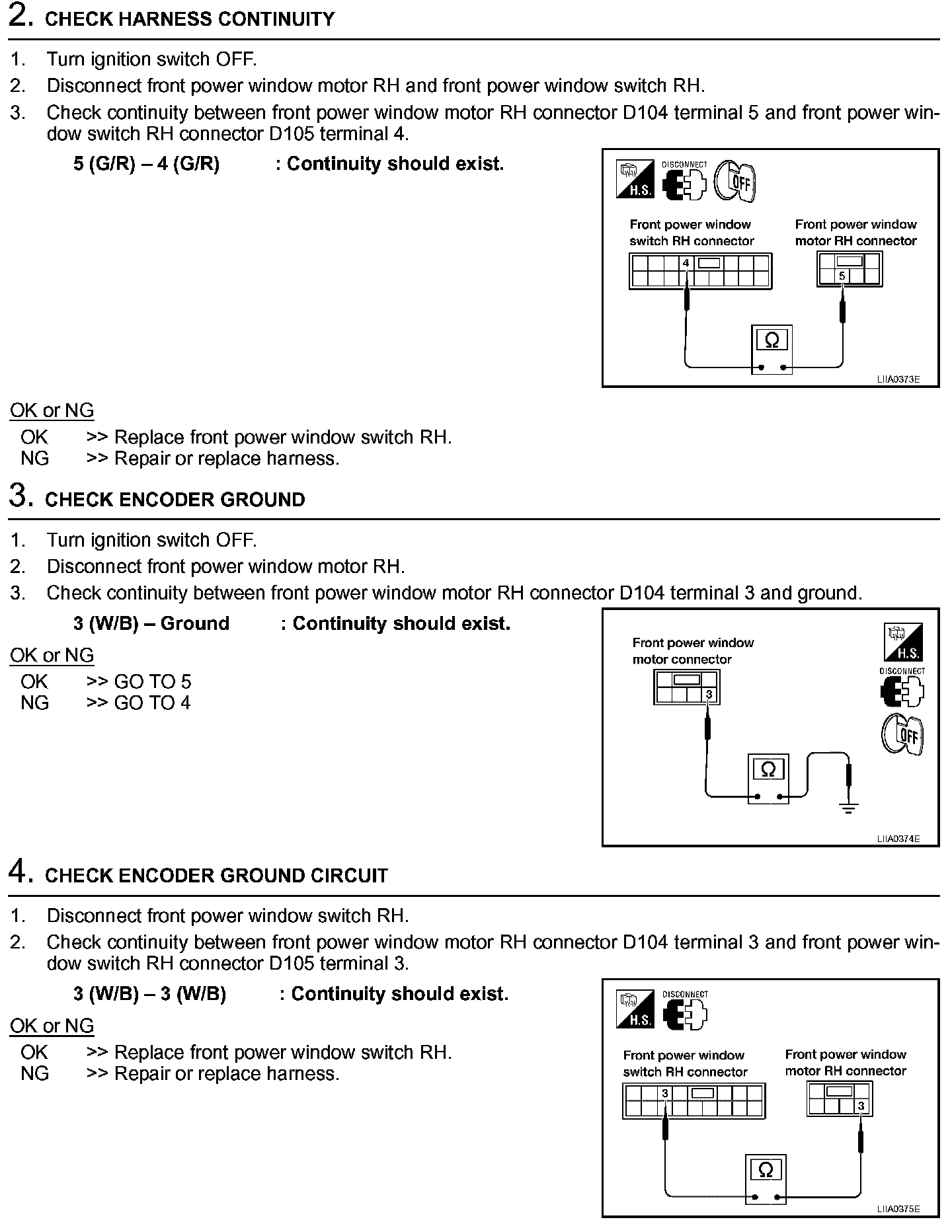 Encoder Circuit Check Front RH (Steps 2 - 4):