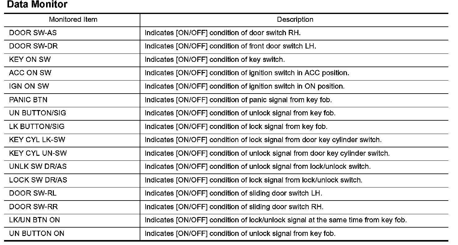 CONSULT-II Application ItemsData Monitor: