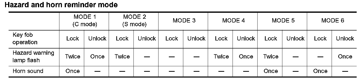 Hazard And Horn Reminder Mode:
