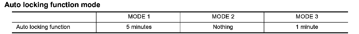 Auto Locking Function Mode: