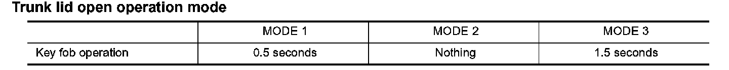 Trunk Lid Open Operation Mode:
