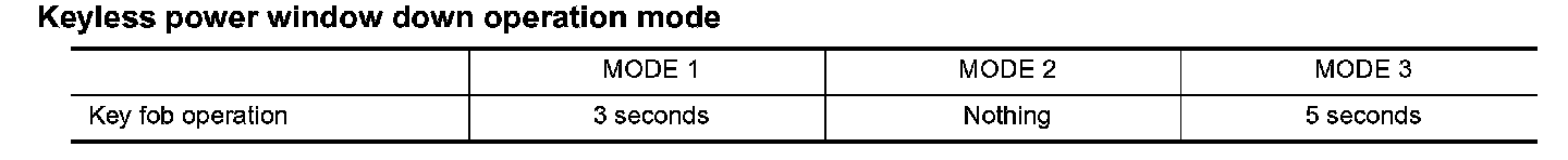 Keyless Power Window Down Operation Mode: