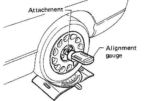 1. Measure the camber, caster and kingpin inclination of both the right and left wheels using attachment Tool and a suitable alignment gauge.