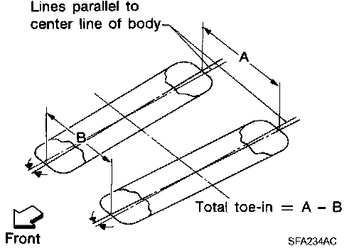 NOTE: Before checking the front wheel alignment, be sure to make a preliminary inspection (Unladen*).