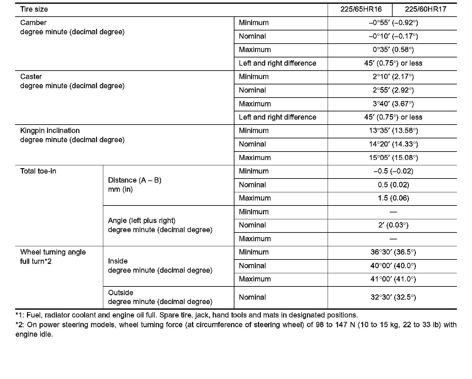 Front Wheel Alignment (Unladen*1)