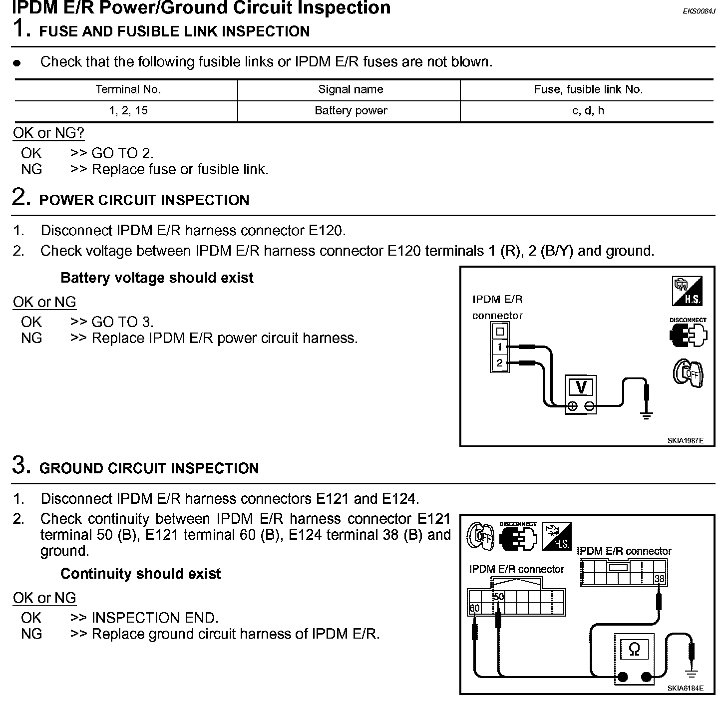 IPDM E/R Power/Ground Circuit Inspection (Step 1 - 3):