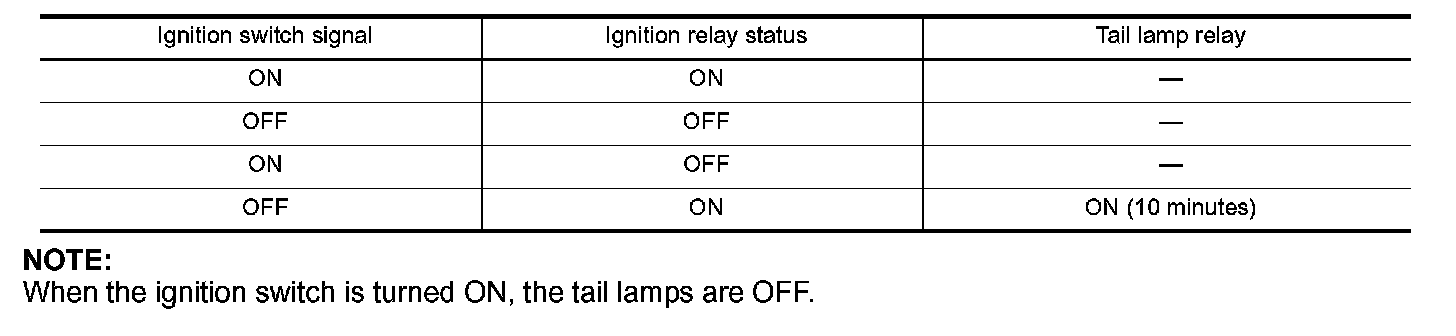 - When the state of the integrated ignition relay does not agree with the state of the ignition switch signal received via CAN communication, the IPDM E/R activates the tail lamp relay.
