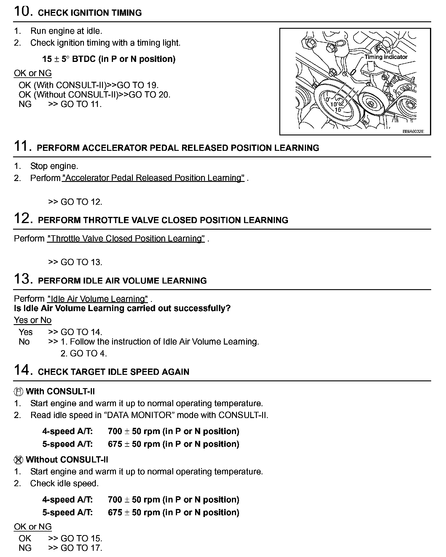 3. On automatic transmission equipped models, when checking idle rpm, ignition timing and mixture ratio, checks should be carried out while shift lever is in N position.