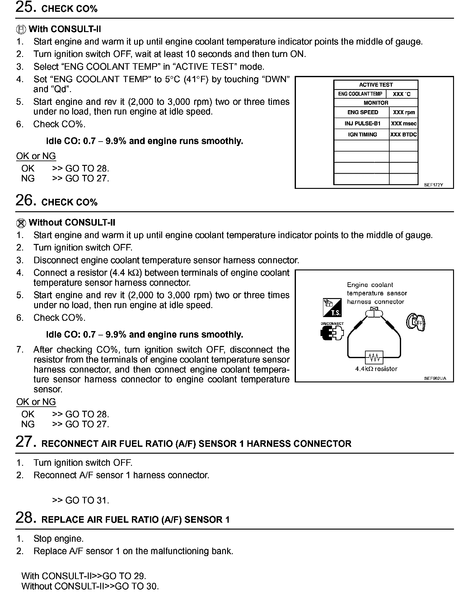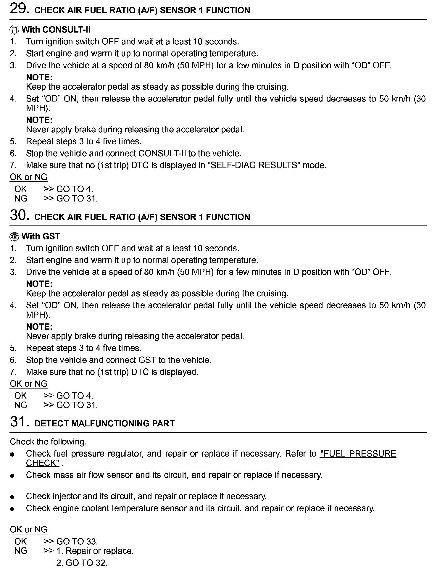 2. On air conditioner equipped models, checks should be carried out while the air conditioner is OFF.