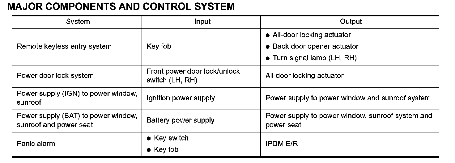 - Panic system. Refer to "REMOTE KEYLESS ENTRY SYSTEM".