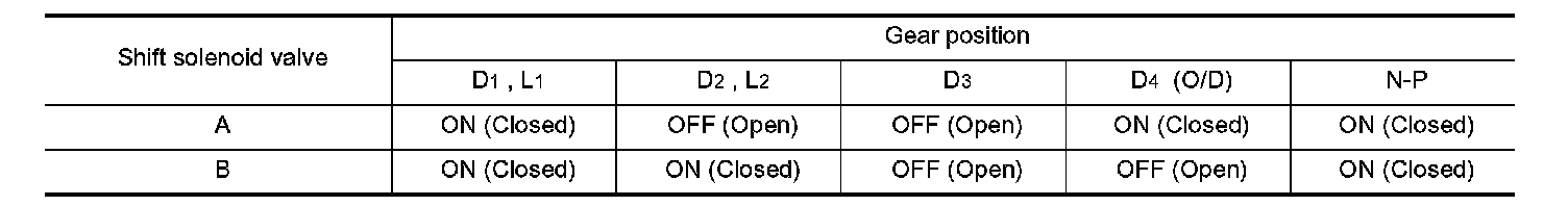 Relation between shift solenoid valves A and B and gear positions: