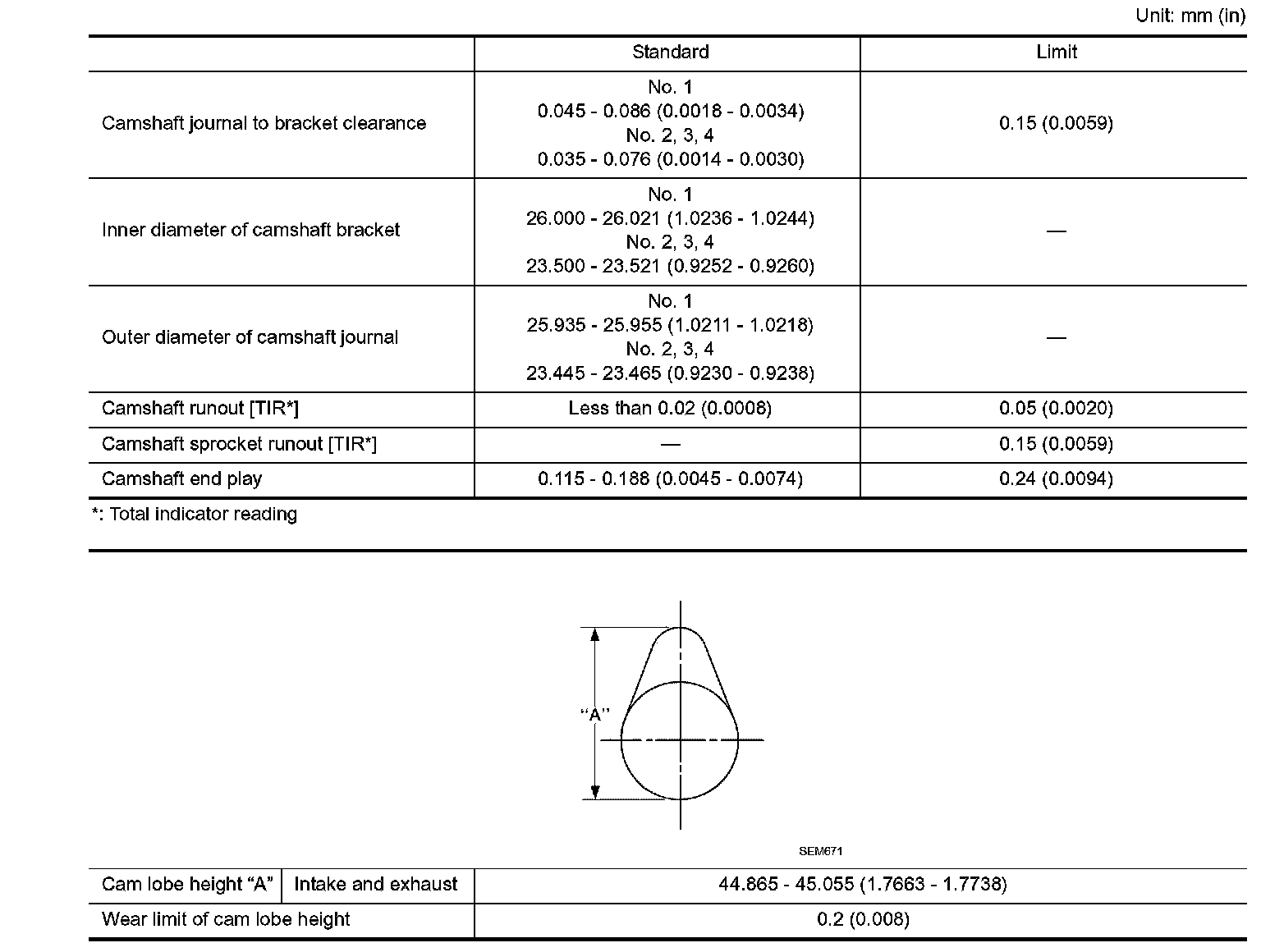 Clearance between lifter and lifter guide 0.013 - 0.039 mm (0.0005 - 0.0015 in.)