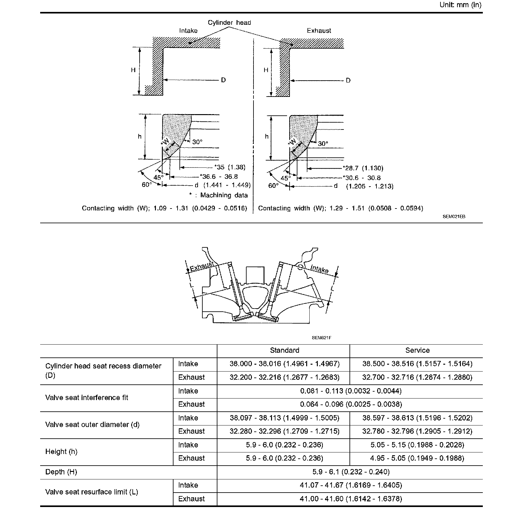 Hot (reference data)* 0.308 - 0.432 (0.012 - 0.017 in.)