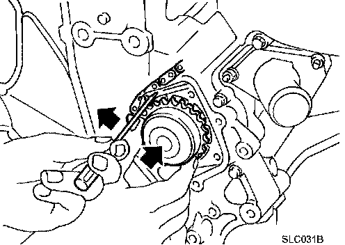 ^ Insert water pump by tightening mounting bolts alternately and evenly.