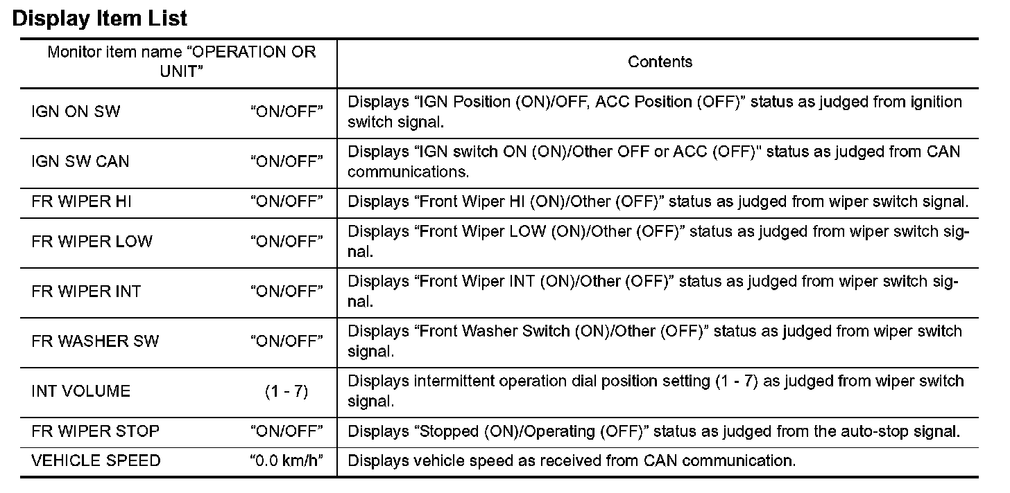1. Touch "WIPER" on the "SELECT TEST ITEM" screen.