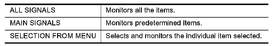 5. When "SELECTION FROM MENU" is selected, touch items to be monitored. When "ALL SIGNALS" is selected, all the items will be monitored.