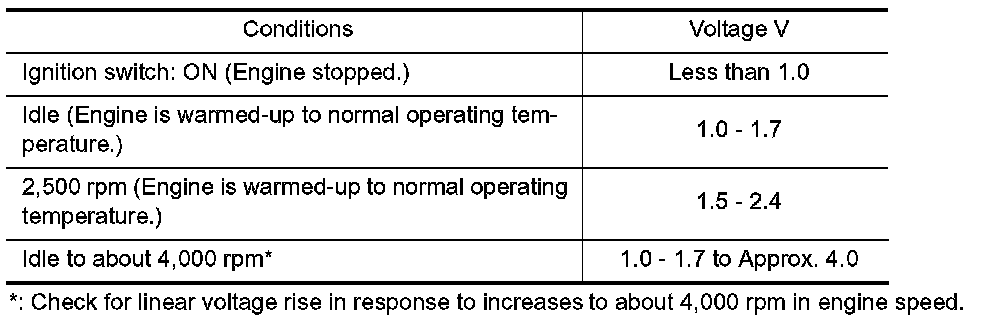 3. Check voltage between ECM terminal 51 (Mass air flow sensor signal) and ground.