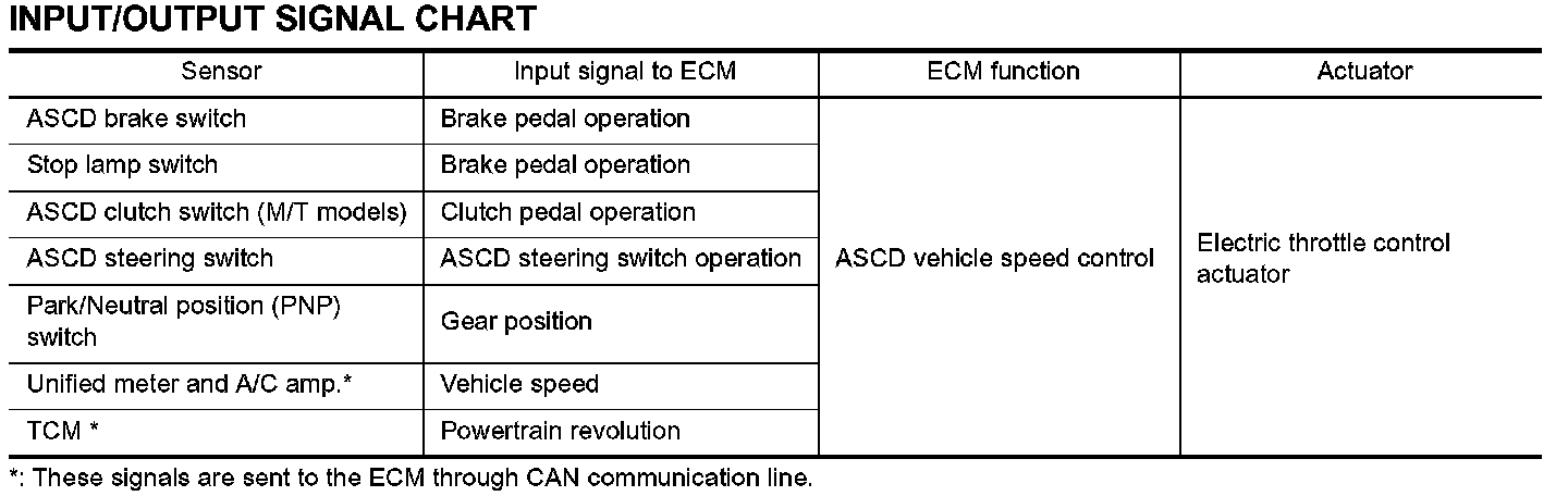 When the ECM detects any of the following conditions, the ECM will cancel the cruise operation and inform the driver by blinking indicator lamp.