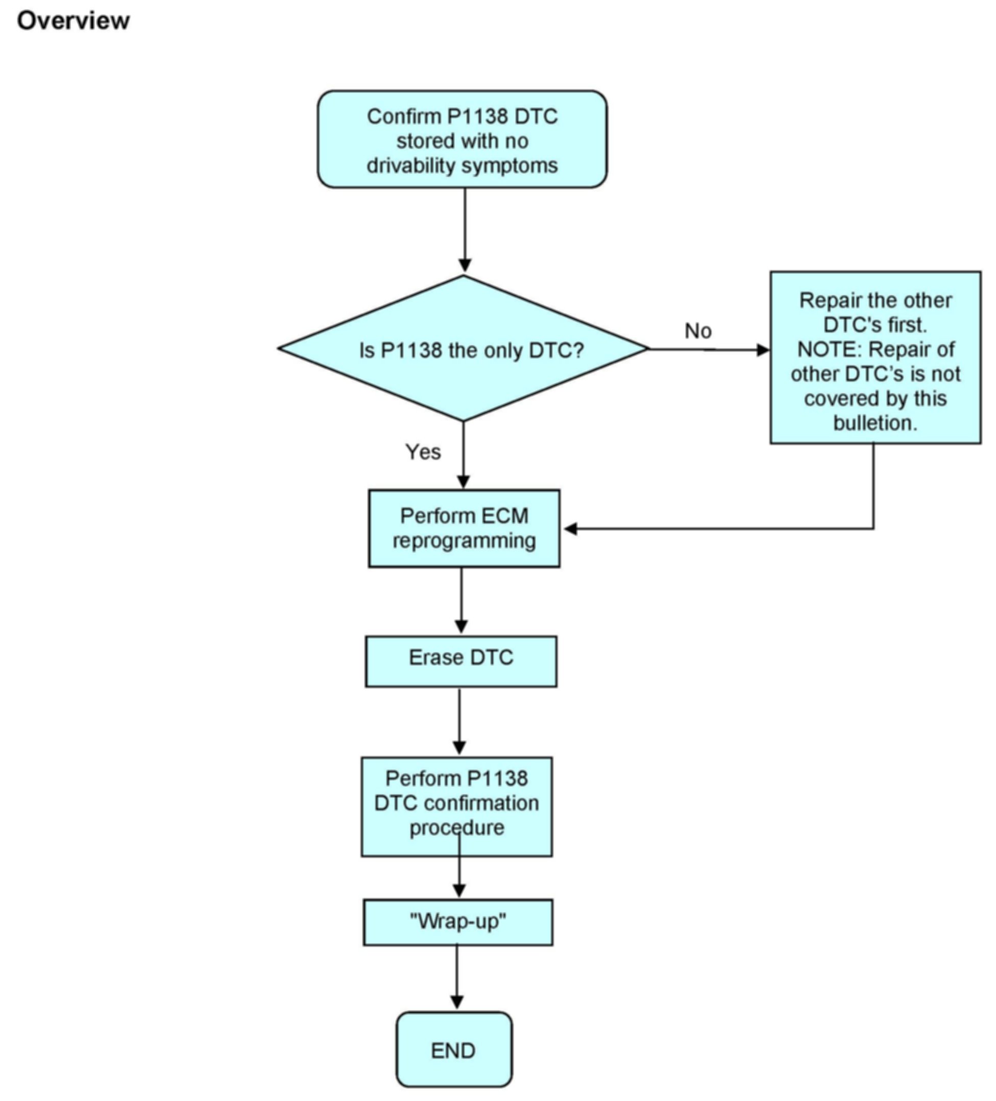^ If DTC P1138 is detected again, refer to the appropriate ESM for further diagnostic and repair information.