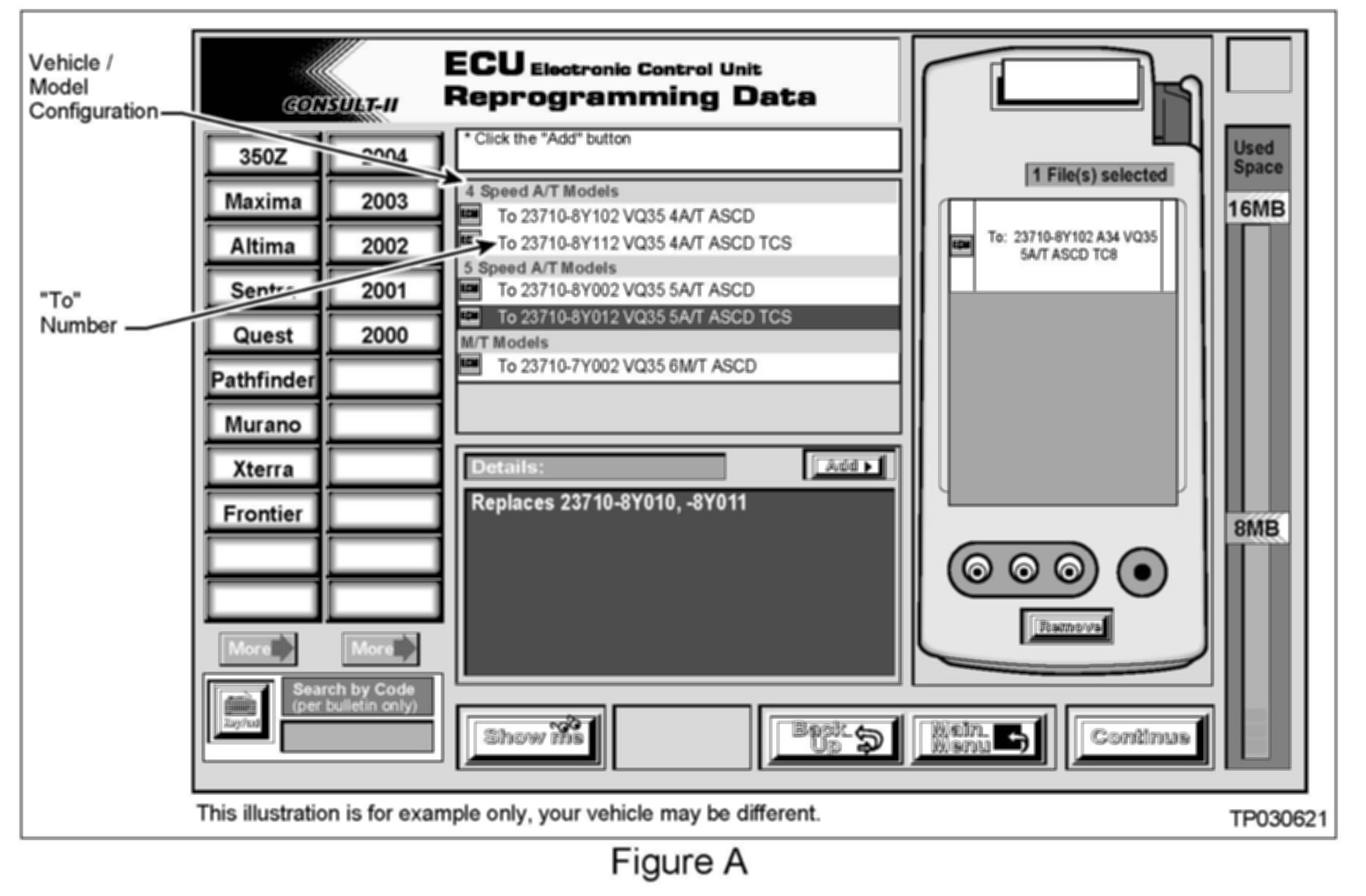 1. Select vehicle model and model year (Example: Maxima, 2004).