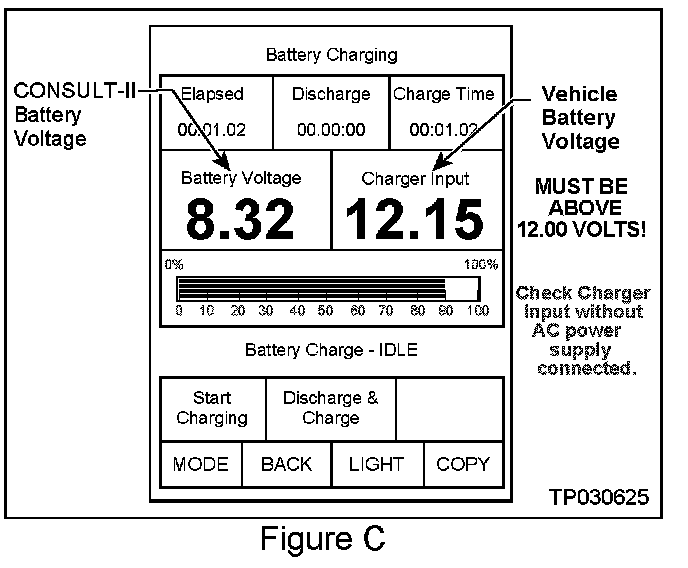3. Check the CONSULT-II's "Charger Input" reading (see Figure C).