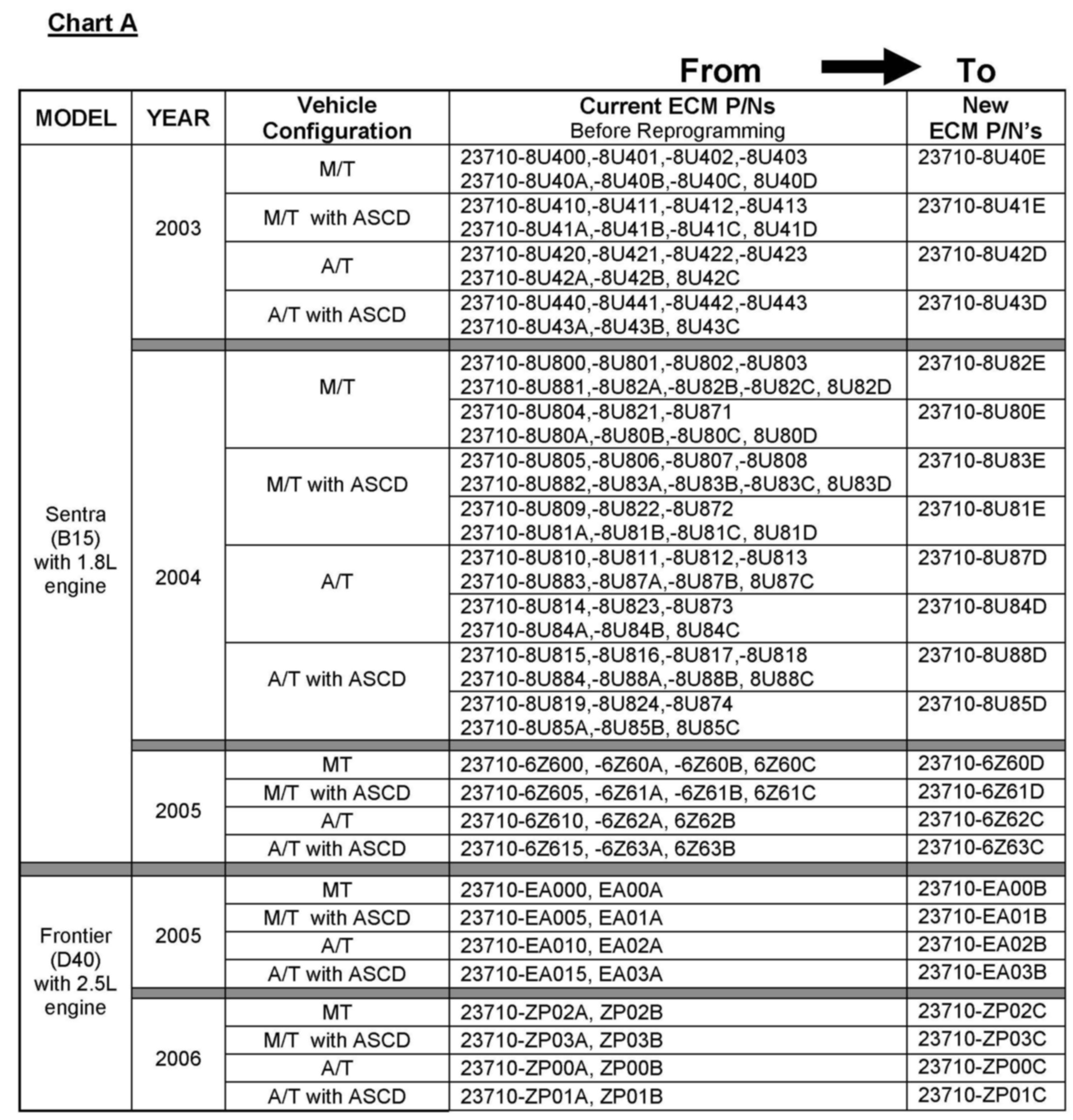 ^ Compare your vehicle's ECM P/N to those shown in Chart A, above.