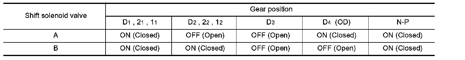 Relation Between Shift Solenoid Valves A and B and Gear Positions