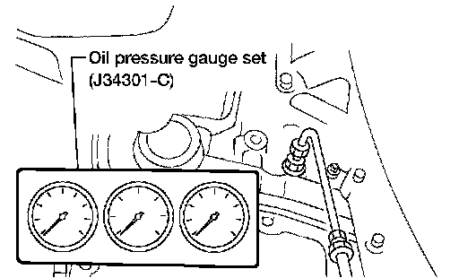 5. Start engine and measure line pressure at idle and stall speed. When measuring line pressure at stall speed, follow the stall test procedure.