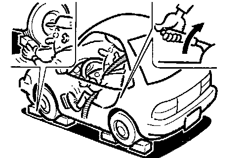 1. Check A/T fluid and engine oil levels. If necessary, add fluid or oil.