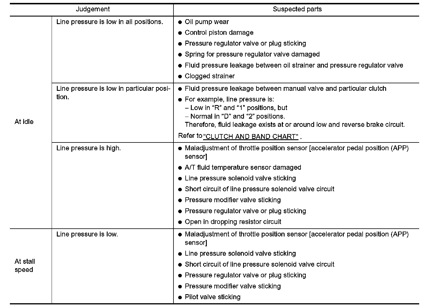 ^ Continue to depress brake pedal fully while line pressure test is being performed at stall speed.