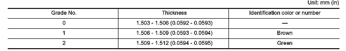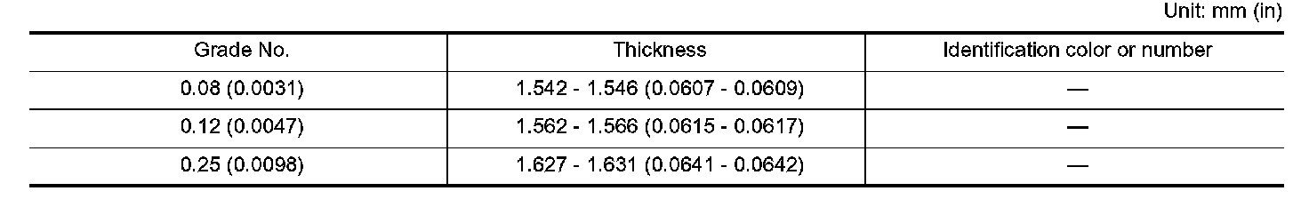 AVAILABLE SHIMS - 1.8L (QG18DE):