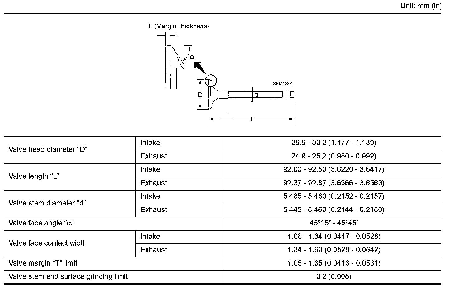VALVE SEAT RESURFACE LIMIT - 1.8L (QG18DE):
