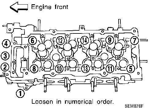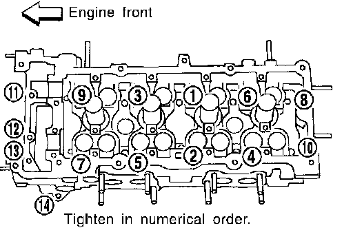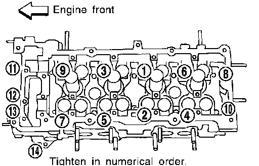 5. Tighten cylinder head auxiliary bolts (11) to (14) in numerical order shown.