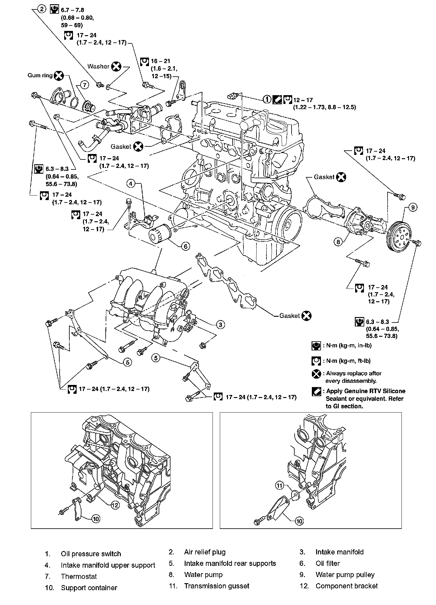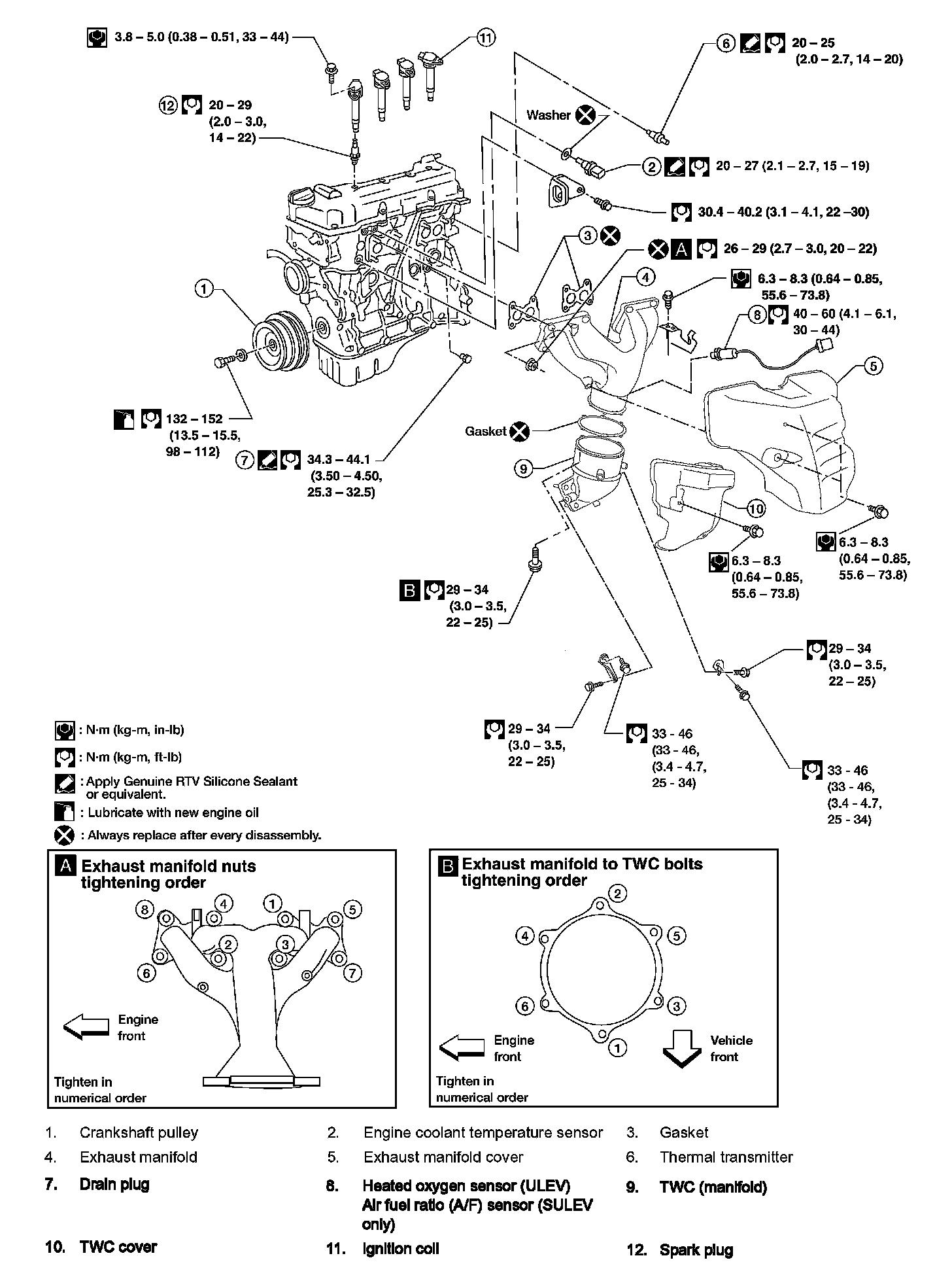 Step 1 (bolts 9 - 12): .........2.0 Nm (0.2 kg-m, 18 inch lbs.)